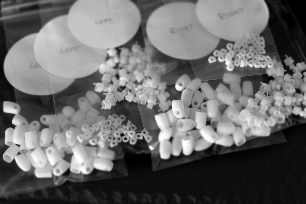 – Vi testar oss fram i många iterationer med prototyperna, utvärderar utseendet, passformen i öronen, finjusterar i CAD och DM gör nya prototyper. Ibland gör de en liten serie prototyper så att vi även kan testa akustiska lösningar med olika typer av filter, vent ports, olika delningsfrekvenser på högtalarna mm.
