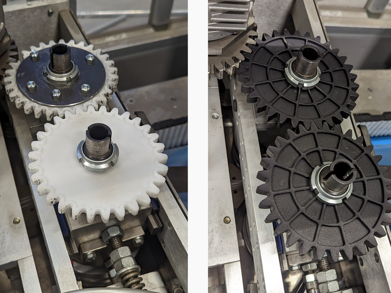 Tidigare använde maskinen kugghjul i en plast som uppenbarligen kunde haft bättre hållfasthet. Digital Mechanics fick det trasiga kugghjulet och tog med hjälp av sin egen konstruktionsavdelning snabbt fram 3D-printade kugghjul i nylon som dessutom är förstärkta och har en bättre hållbarhet än originaldelarna. De nya kugghjulen ska permanent ersätta originaldelarna.