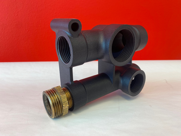 Wavin har också anlitat Digital Mechanics för att ta fram en ytterligare kritisk reservdel till en kylvattenkopplingspunkt. Där originaldelen i aluminium tar lång tid att få fram och är väldigt dyr att beställa. Därför bad de Digital Mechanics ta fram en lösning i plast som kan hålla igång systemet en tid framöver i syfte att undvika stillestånd i en mycket hårt pressad tillverkning.